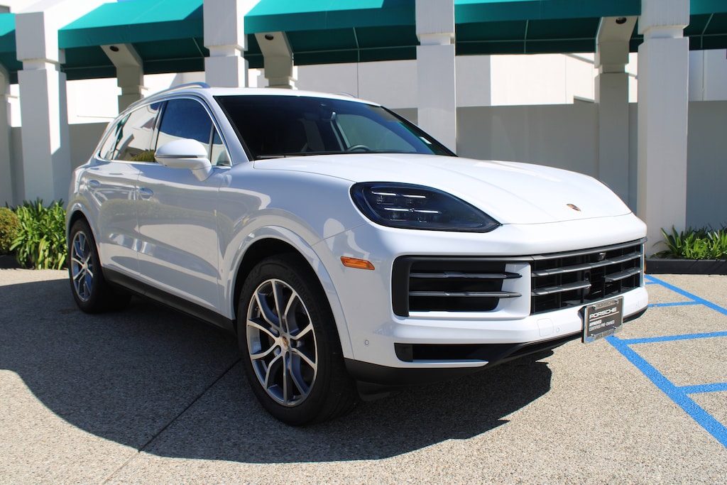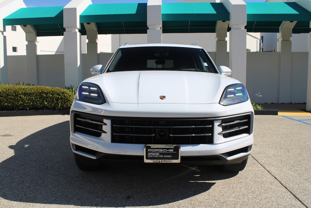 Clean CARFAX. Certified. Carrara White Metallic 2025 Porsche Cayenne Base AWD 8-Speed Automatic with Tiptronic 3.0L V6. Porsche Approved Certified Pre-Owned with added 2 year and/or unlimited miles expires 07/25/2031. 14-Way Power Seats w/Comfort Memory, 4-Zone Climate Control, Adaptive Cruise Control w/Lane Keep Assist (LKA), BOSE Surround Sound System, Exclusive Design Fuel Cap, Exterior Mirror Lower Trim & Base in Ext Color, Front Ventilated Seats, HD-Matrix Design LED Headlights, Head-Up Display, Heated GT Sport Steering Wheel in Leather, Night Vision Assist, Panoramic Roof System, Passenger Display, Premium Package Plus, Rear Heated Seats, Roof Rails in Aluminum Finish, Technology Package, Trailer Hitch w/o Tow Ball, Under Door Puddle Light Projectors, Wheels: 21 Cayenne Exclusive Design.