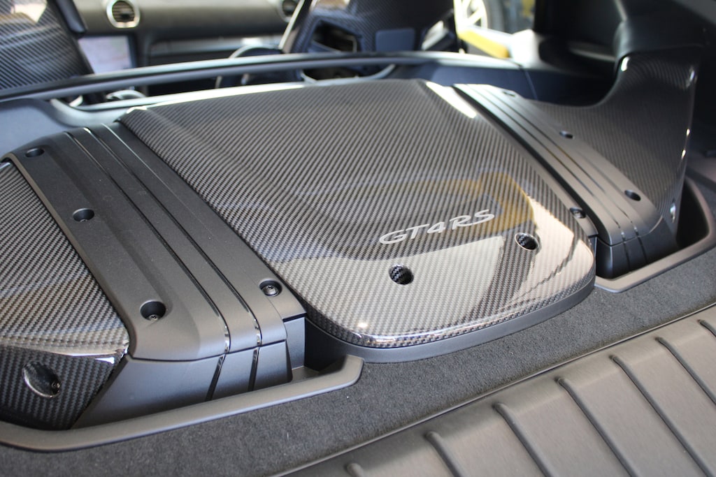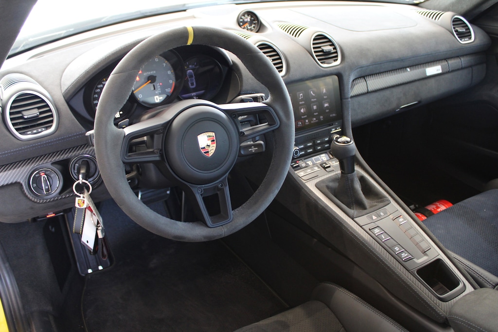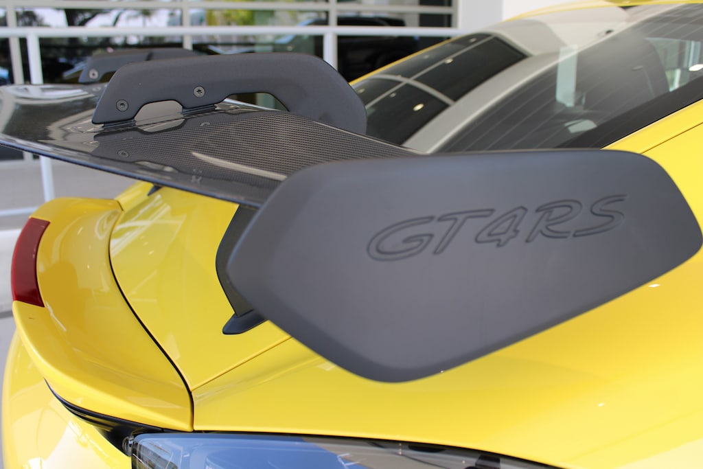 CARFAX One-Owner. Clean CARFAX. Racing Yellow 2023 Porsche 718 Cayman GT4 RS RWD 7-Speed Porsche Doppelkupplung (PDK) 4.0L H6 DOHC 24V LEV3-ULEV125 493hp Alloy wheels, Auto-Dimming Mirrors, BOSE Surround Sound System, Carbon Fiber Floor Mats w/Leather Edging, Chrono Package, Door Handles in High Gloss Black, Door Pull Loops in Racing Yellow, Fire Extinguisher, Illum Bespoke Door-Sill Guards in Carbon Fiber, Light Design Package, Med 3D-Printed Bodyform Full Bucket Driver's Seat, Porsche Ceramic Composite Brakes, Seat Belts in Racing Yellow, Smartphone Compartment, Voice Control, Weissach Package, Wheels: 20 718 Cayman GT4 RS Forged Aluminum, Window Triangle Trims in Carbon Fiber.